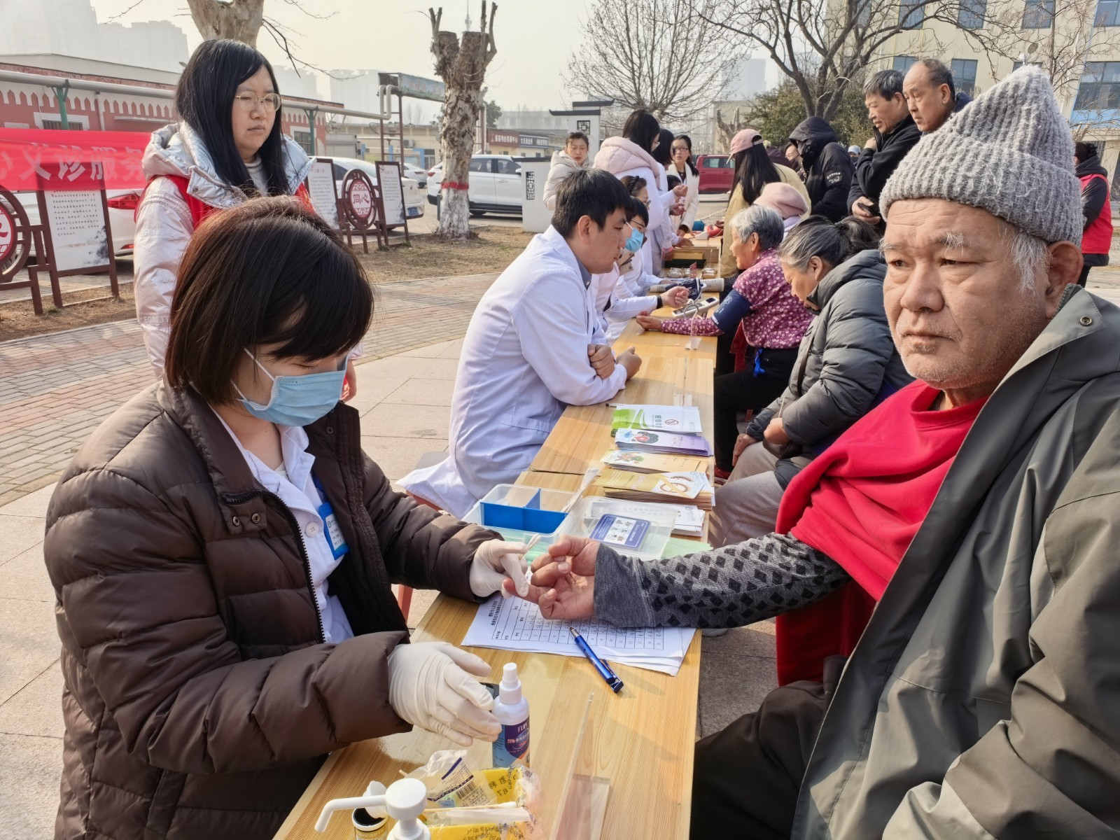活动现场,来自濮阳市人民医院骨科、神经内科、心内科等科室的专科医师,携带血压计、血糖仪等专业设备,为居民开展专科问诊、基础健康指标检测。医师们耐心倾听居民的健康诉求,细致查看各项检测结果,结合居民的病症与个体差异,给出专业的诊疗建议和健康指导;来自濮阳医学高等专科学校的中医药团队也充分发挥专业优势,针对居民手中的常用中药,详细讲解服用禁忌与储存方法,普及合理用药知识。同时,团队成员结合中医药理论,从饮食搭配、作息调整、穴位按摩等方面,为居民提供个性化日常养生建议,将专业健康知识转化为通俗易懂的实用指南,让居民在家门口享受到专业多元的健康服务。