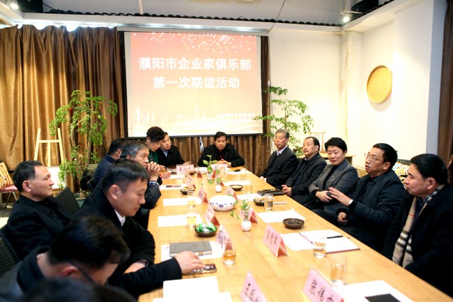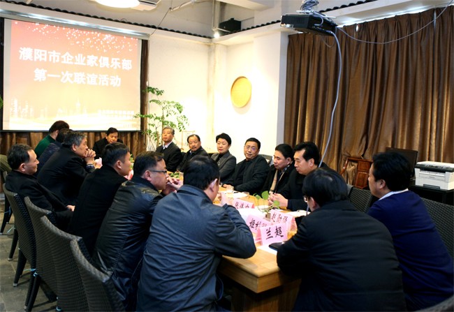 “濮阳市企业家俱乐部”在市委统战部、市工商联的倡导和推动下组建成立。旨在搭建企业与政府、企业与企业之间学习交流沟通平台,获得商业信息、结交朋友、分享企业管理经验,相互帮助、相互支持,实现资源整合,实现共同发展。俱乐部活动实行轮值形式,每次确定一个活动主题,原则上每两个月开展一次活动,必要时随机开展活动。