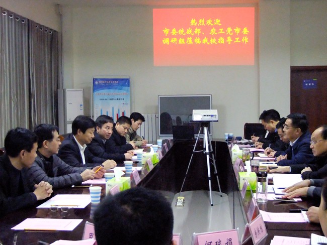 2月26日,市委统战部副调研员邵宁、农工党市委主委牛锁成一行到濮阳医学高等专科学校召开座谈会、现场观摩,开展实地调研。濮阳医专党委书记张运海等校领导、相关处室负责人以及教师代表参加座谈。