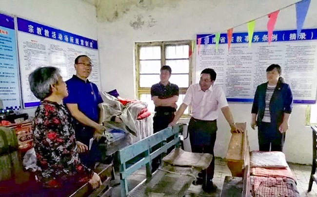在随机走访的鲁河镇西杨什八郎村宗教活动场所,村支书和场所负责人详细汇报了场所和活动开展情况。张红林叮嘱负责人要认真学习贯彻党的十九大精神和新修订《宗教事务条例》,传播正能量,爱国爱教,遵纪守法。